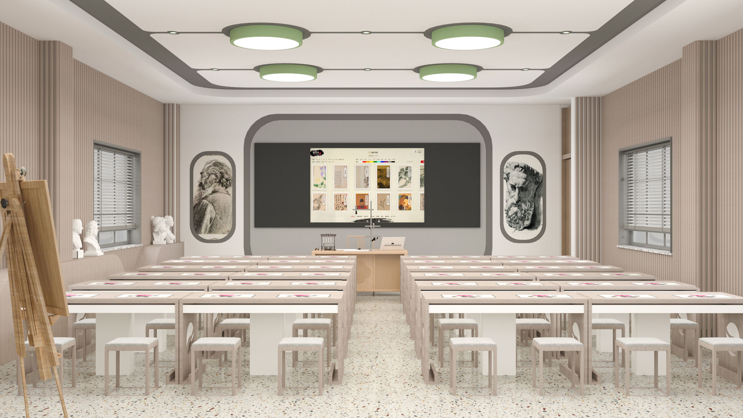 ·多功能美术专用桌,现代简约风格,集画架、画笔收纳于一体,满足多种美术教学场景。