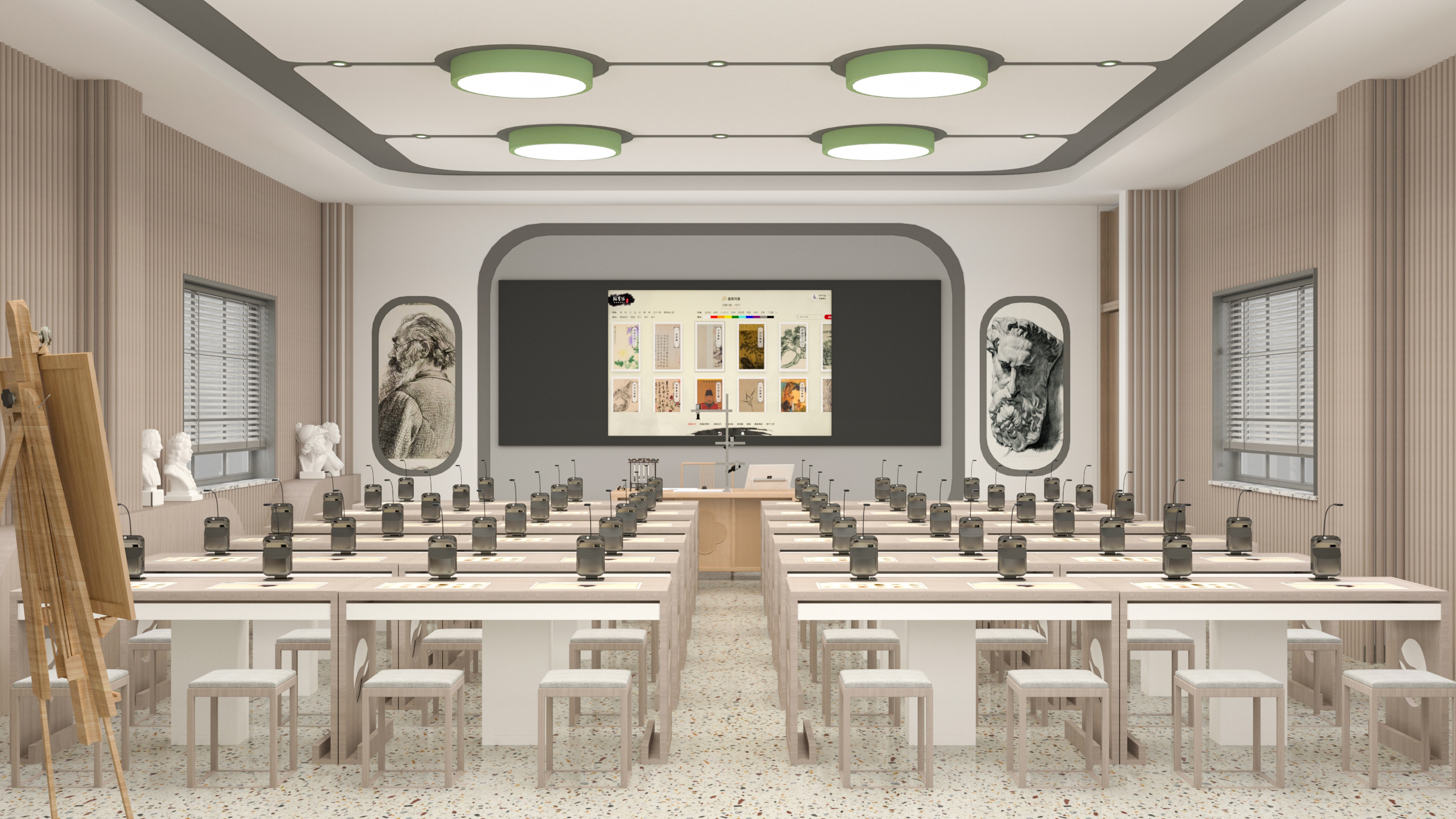 7、满足普通美术教室和专业美术教室应用需求,在普通多媒体大屏上可以使用云资源,用于剪纸、素描、工笔画等教学需求。