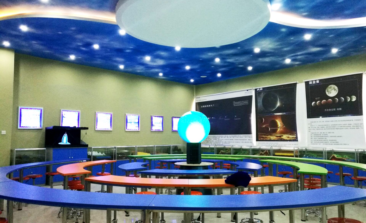 “这个教室布置的蛮有创意! ”一路上,老师们时不时发出赞叹的声音。不少老师拿出手机拍下教室的特色布置。和传统教室不同的是,在这间89.3平方米的教室里没有熟悉的桌椅板凳,展现在师生面前的是硕果累累的获奖证书、奖杯;数字星球系统、数字立体地形、数字模型、数字互动地理沙盘系统等教学产品,配合半圆环式的课桌椅、星空屋顶和太空窗口让这间教室变成了一座地理景观城。