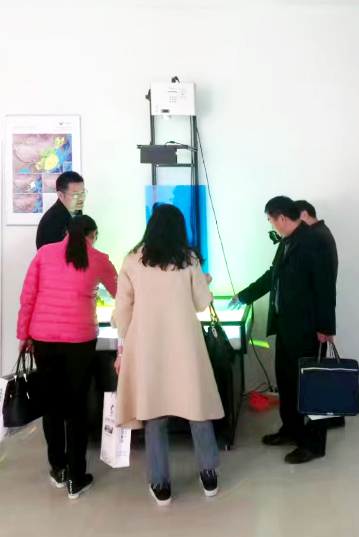 对于地形地貌和河流走向这样比较抽象的知识点,我们还可以借助数字模型和数字互动地理沙盘系统将其具象化。学生可在数字模型中正面、两侧全方位观察其地貌特点。除了眼观、耳听来消化知识点、学生更可以自己动手来加深了解,在沙盘中挖起沙子,蓝色的河流便悄然而生,河流走向清晰可见。通过沙堆高度的自由组合可以模拟出教学中所涉及到的岩石、黄土、海岸、冰川等地貌。在实际教学中,数字地理沙盘系统带来的互动体验不仅让学生感受到探索发现的乐趣,更可在实践中生动形象的学习地理知识。