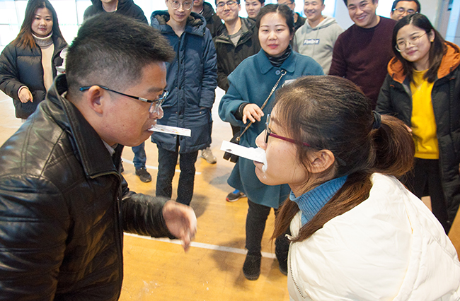 ▲筷传纸杯:筷子传递纸杯,用时最长的一组淘汰。纸杯:我到底做错了什么?筷子:我又做错了什么??