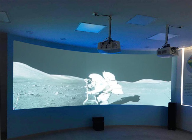 ▲环幕示教系统:专用于地理视频资源的播放。巨大的屏幕带来震撼的视觉冲击,直观地展示事物发展的动态过程,让课程内容变得更生动有趣。