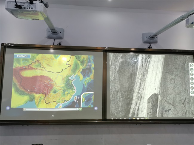 羿飞数字立体地形与普通黑板和传统电子白板最大的不同,是它集成了两块中国、世界立体地形图,看得见的高低地势走向,给学生塑造一个更立体直观的印象,并在每天的上课过程中不断强化这个印象。