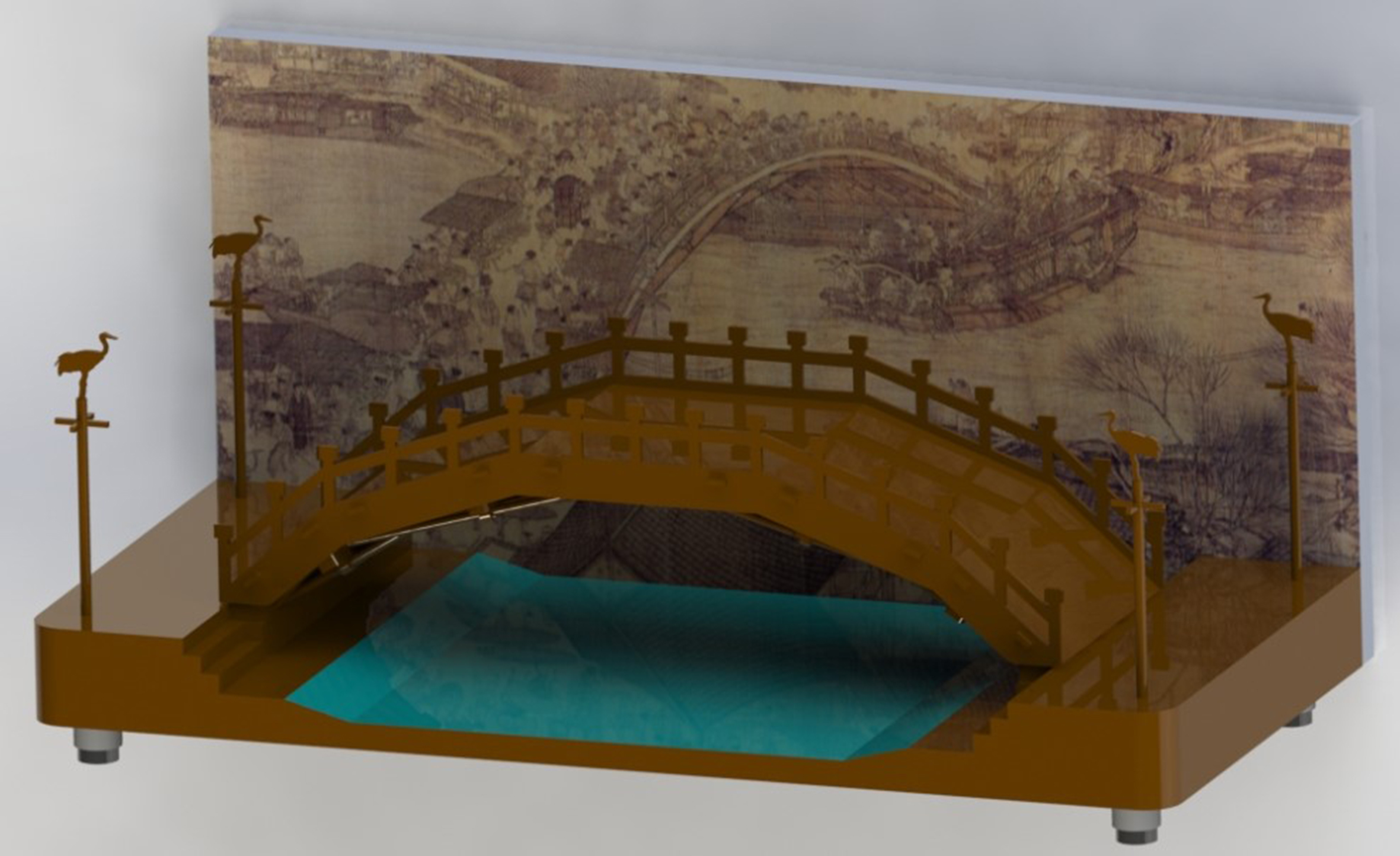 《清明上河图》整幅长卷创作于十二世纪初的中国,图卷通过全景式构图,描绘出北宋都城汴梁繁华绮丽的景象。而汴京的自然风貌与人文景观尤以汴水虹桥,及虹桥两堍对立着的四个华表为中轴铺展而来。我司产品编木拱桥演示模型旨在深刻透析作为《清明上河图》全卷中心的虹桥——编木拱桥基础上,帮助学生整体把握北宋时代的精神风貌,并进而协助教师培育学生实践操作能力与历史交互思维。