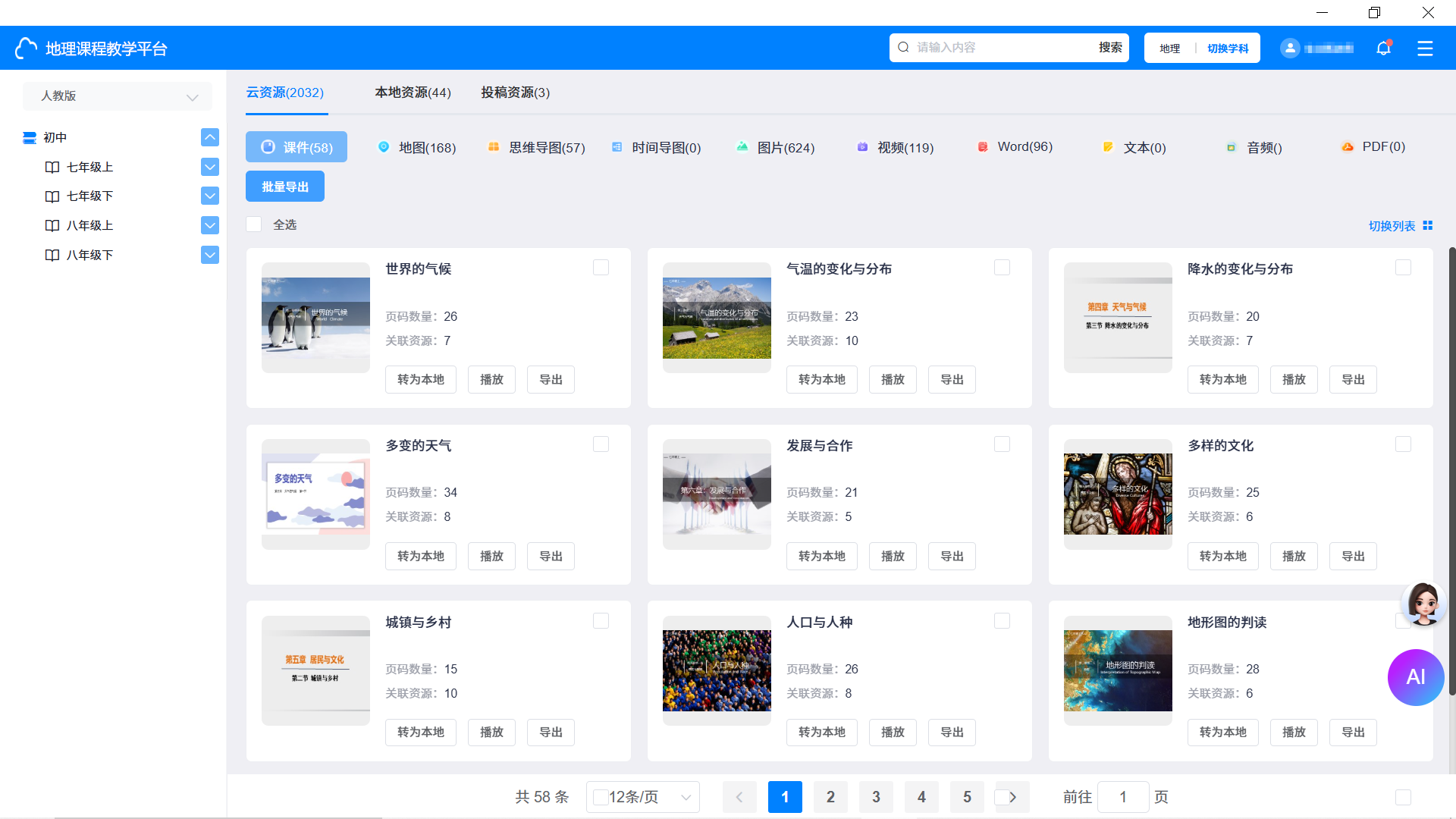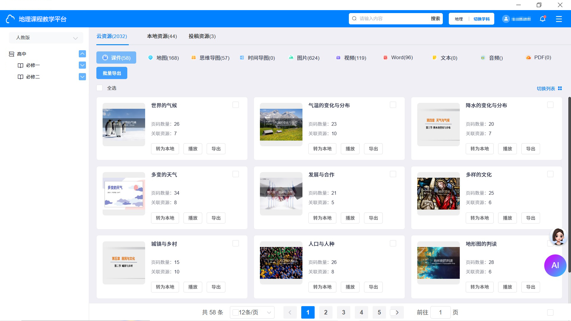 平台为课程提供了丰富的图片、视频、文档等资源,满足教学过程中的各种需求。同时,支持从云端同步课程和地图等最新资源,确保用户能够及时获取到更新、更优质的教学素材。